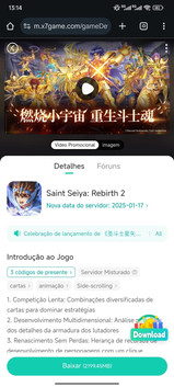 Nessa semana, a plataforma de jogos da x7game, colocou o jogo "Saint Seiya: Rebirth 2" na sua lista de jogos. Isso quer dizer que você pode jogar o jogo, da versão DeNA, pelo aplicativo deles, podendo obter ofertas exclusivas para o jogo.