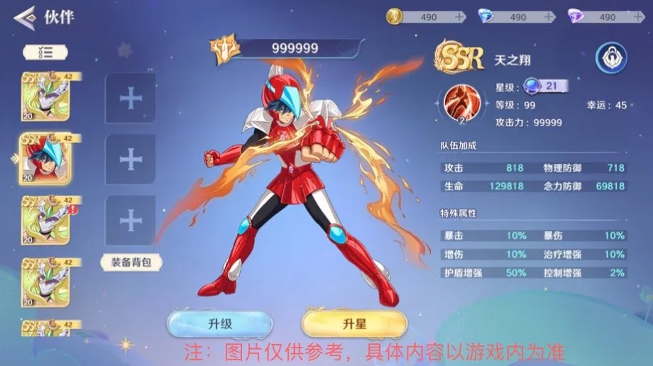 No menu de parceiros disponíveis, você pode visualizar todos os parceiros que já possui.🔧 A tela de equipamentos permite atribuir itens aos parceiros para aumentar seus atributos.
